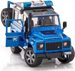 - A Land Rover számos funkcionális elemével rendelkezik, amire a Bruder modelleknél már megszoktunk. A rendőrautó fény- és hangjelzéssel ellátott villogóval van felszerelve. Az autó nyitható ajtókkal és motorháztetővel, valamint hátsó ajtókon található pótkerekkel rendelkezik, és hosszú kormány segítségével irányítható.