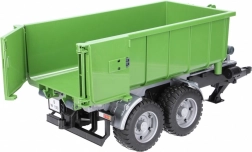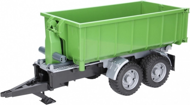 Ez a valósághű BRUDER utánfutó zöld‑fekete kivitelben sokoldalú konténerrel bővíti bármelyik traktort. A billentő mechanizmusnak és a nyitható hátsó falnak köszönhetően a rakomány könnyen kirakodható, a konténert pedig le is lehet venni az alvázról és önállóan használni.