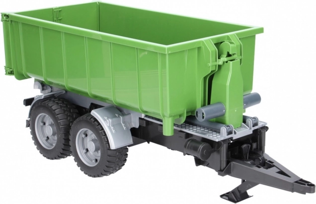 Ideális kiegészítő a kis gazdáknak: a Bruder zöld, billenő konténeres utánfutó 1:16 méretarányban billentést, nyitható hátsó ajtót és levehető konténert kínál. Tartós ABS műanyag, kompatibilis a BRUDER traktorokkal, Németországban készült.