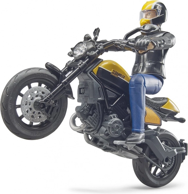 A BRUDER Scrambler DUCATI Cafe Racer részletgazdag motor modellje ideális a kis motorrajongók és a gyűjtők számára is. A valósághű kidolgozást – a látható motorelemektől az ülés formájáig – egy teljesen mozgatható motoros figura egészíti ki, amely természetes vezetési és akciópozíciókat tesz lehetővé.