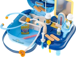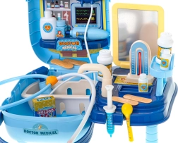 Gyerekeknek szánt orvosi készlet praktikus bőröndben, amely minden játékot orvosi rendelővé varázsol. Kreatív játék, amely segít a gyerekeknek megtanulni az alapvető orvosi eszközöket és eljárásokat. Hordozható bőröndje révén a gyerekek otthon vagy barátoknál is játszhatnak orvososat.
