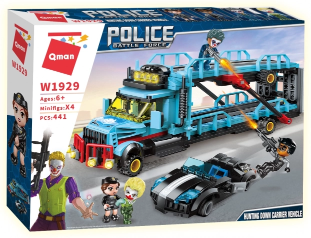 Merülj el a rendőri bevetések világában a részletgazdag Qman Police Battle Force készlettel. A tolvajok két szintes kamionja menekülésre kész, de az egységed a villámgyors járgánnyal egy lépéssel előttük jár. A 441 elemmel az építés és a játék is élvezetes, rengeteg átépítési és jelenetalkotási lehetőséggel.