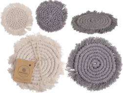 Fedezze fel a makramé csészealátétek varázsát modern szürke árnyalatban. A kerek forma, a szorosan sodort szál és a díszítő bojtok időtálló kiegészítőt alkotnak, amely remekül mutat az étkezőasztalon, a dohányzóasztalon és a munkasarokban is. Az alátétek megbízhatóan védik a fát és az érzékeny felületeket a bögre hőjétől, a foltoktól és a karcolásoktól.