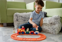 A vonat kezelése és a pálya építése segíti a kéz-szem koordináció fejlesztését, így játékos környezetben tréningezi a finommotorikát.