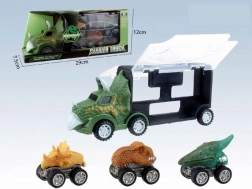 Szórakoztató készlet kis sofőröknek: dínó kamion vontatóval és 3 visszahúzhatós kisautóval. Eredeti, dinoszaurusz alakú design, egyszerű vezérlés és rengeteg akciódús szórakozás gyerekeknek.