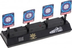 Az elektronikus cél kiváló választás pontossági edzéshez és versengő szórakozáshoz otthon. A négy különálló cél változatos játékmódokat tesz lehetővé – a gyors párbajoktól a takarékos lövöldéig, minél kevesebb lövedékkel. Minden találatnál a cél lecsuklik, mind a négy eltalálása után 1 pontot kapsz, és a célok automatikusan visszatérnek kiinduló helyzetükbe.