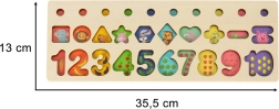 A játék gondosan kidolgozott, finoman csiszolt és kellemes tapintású. Támogatja a motorikus készségek, a koordináció, a vizuális megkülönböztetés és a kreativitás fejlődését. Kiválóan alkalmas az első ismerkedéshez a számokkal, színekkel és alakzatokkal otthon és óvodai környezetben is.