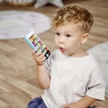 A gyerek okostelefon biztonságos kivitelben hozza el a valósághű „felnőttes” játékot a legkisebbeknek. A színes gombok, fények és vidám hangok támogatják a hallási észlelés, a finommotorika és a fantázia fejlődését.