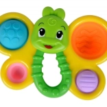 Ez a könnyű és biztonságos, pillangó alakú csörgő a kisgyermekek kezeihez lett tervezve. A színes szárnyak különféle felületei felfedezésre hívnak, a csörgő elemek serkentik a hallást, a kényelmes fogantyú pedig megkönnyíti a tartást és az önálló játékot.