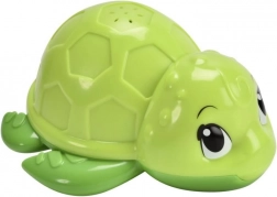A kis teknős a víz felszínén lebeg, és finoman spricceli a vizet – tökéletes a vidám fürdéshez és az első vízi játékokhoz.