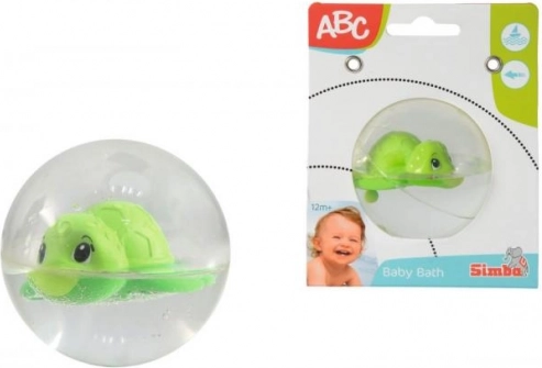 Tökéletes játék a legkisebbeknek: Teknősbéka úszik a színes gyöngyökkel és vízzel teli gömbben, az érzékek fejlesztésére tervezve.