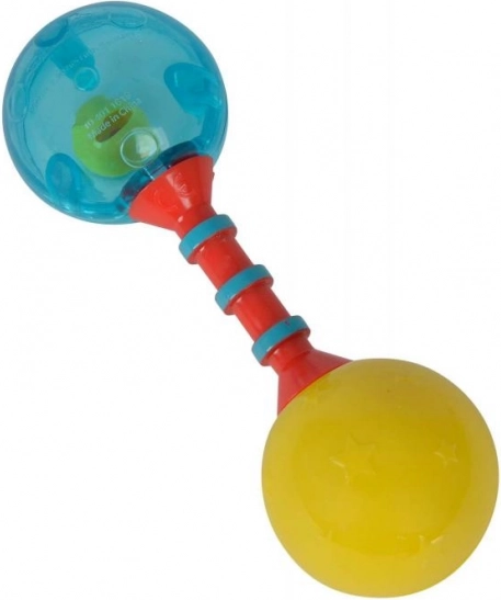 Ez a csörgő stimulálja a gyermek érzékszervi fejlődését élénk színeinek és a rázáskor hallható hangjainak köszönhetően.