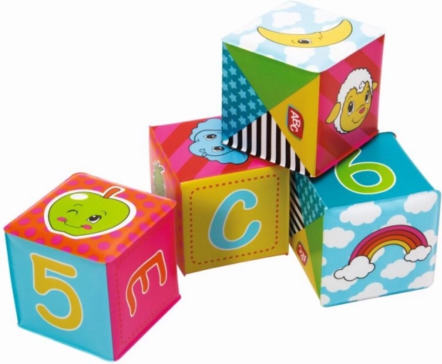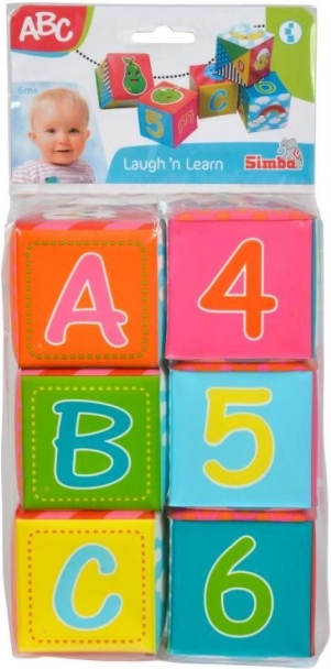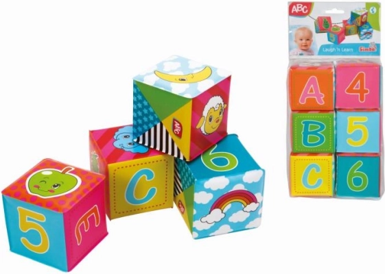 A csomag 6 puha kis kockát tartalmaz a legkisebbek számára. Mindegyik kocka mérete 8 x 8 cm. Vidám színek, állatok, számok és betűk képei díszítik ezeket a kockákat, amelyek tökéletesek a gyermekek fejlődéséhez és szórakozásához.