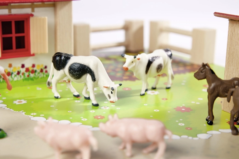 Lovak, tehenek, malackák, ludak és a gondozó serkentik a fantáziát, segítenek az állatfajok felismerésében, és fejlesztik a szociális készségeket a szerepjáték során.