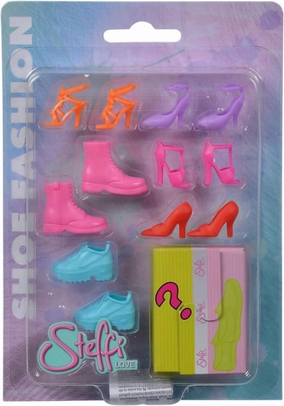 Ez a Steffi babacipő-készlet bővíti az öltöztetési lehetőségeket és támogatja a fantáziadús játékot. A különféle stílusok és színek segítségével bármelyik outfithez illeszthető lábbeli választható, így egyedi kombinációk hozhatók létre.