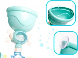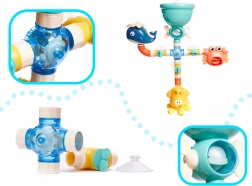 A felszerelés pillanatok műve: az erős tapadókorongok a kádban és a csempén is tartanak, így a játék stabil marad. A kék szelepek lehetővé teszik a gyerekeknek a víz irányának és átfolyásának szabályozását, ezáltal fejlesztik ügyességüket, logikus gondolkodásukat és a kéz–szem koordinációt.
