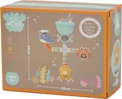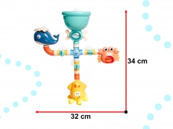 A színes vízi pálya tengeri állatkás motívumokkal felfedezéssé varázsol minden fürdést. Öntsön vizet a felső tölcsérbe, és az áramlás működésbe hozza az összekapcsolt csöveket, megforgatja a kerekeket és megmozgatja a figurákat – olyan szórakozás, amely leköti a gyerekek figyelmét és kellemesebbé teszi a mindennapi fürdést.