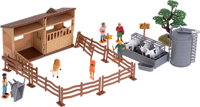 Tehén, bika, juh, kecske és további kiegészítők, hozzá gazda figurák és kerítéselemek a karámok kialakításához. Teljes felszerelés a valósághű játékhoz.