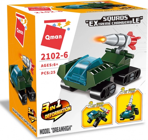 A Qman minikészlet kis csomagban kínál kiváló arányt a szórakozás és a variálhatóság között. A 3 az 1-ben koncepciónak köszönhetően a gyerekek könnyedén építhetnek különböző modelleket – a kis tanktól az akciójárműig – és bármikor át is alakíthatják őket. A szett fejleszti a finommotorikát, a térbeli képzelőerőt és a kreativitást.