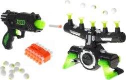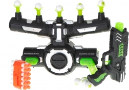 - Lövő célpont, habszivacs lövedékes pisztoly, tár, 5 fúvóka, 10 polisztirol labda, 12 habszivacs nyíl