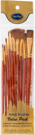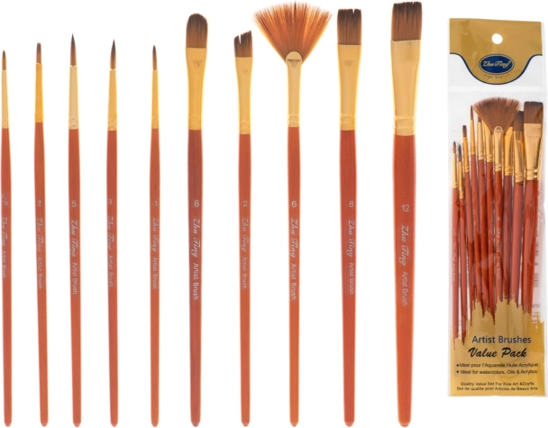 A készlet 10 darab művészecsetet tartalmaz, amely különböző festéktípusokhoz használható. A különböző vastagságú végek segítenek összetettebb formák létrehozásában, a vékony ecsetek pedig lehetővé teszik a művészeti alkotások minden részletének finomítását. Mindegyik ecset számozott, ami könnyíti a megfelelő méret kiválasztását.