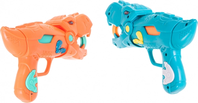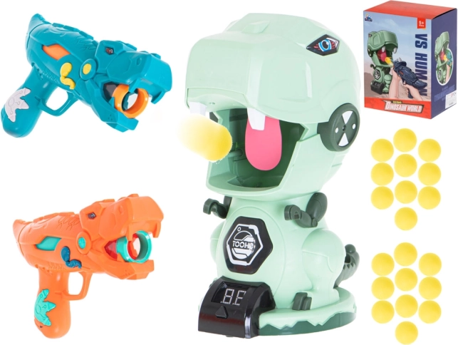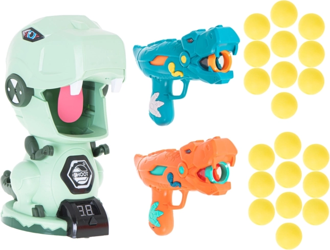 Két stílusos, dinoszaurusz alakú pisztoly lehetővé teszi a puha habgolyók biztonságos és hatékony lövését. Ideális páros játékokhoz és versenyekhez.