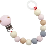 Élvezze a biztonságos cumi-rögzítést ezzel a kézzel készített fa lánccal, amely ideális kisgyermekek számára. A lánc szilikon gyűrűvel van felszerelve, lehetővé téve szinte bármely cumi rögzítését. Minden anyag gondosan kiválasztott, hogy biztonságos legyen a gyermekek számára, ami azt jelenti, hogy ellenállnak a nedvességnek és nem tartalmaznak káros anyagokat.