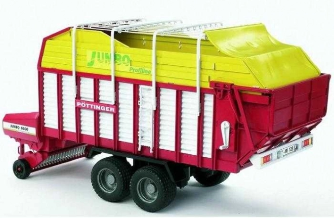 Hozd el az aratás valódi hangulatát az udvarra. A BRUDER Pöttinger Jumbo 6600 takarmánygyűjtő kocsi masszív felépítésével, jellegzetes piros–sárga dizájnjával és precíz részleteivel hűen idézi az eredeti mezőgazdasági gépet. A gyerekek könnyedén kinyithatják az oldalfalakat és a hátsó ajtót, lehajthatják a létrát, a tetőkorlátok eltávolításával pedig beláthatnak a kocsi belsejébe.