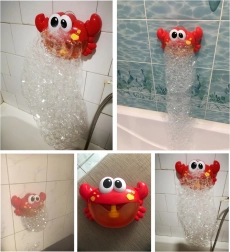 Ez a bájos rák mókás buborékshow-vá varázsolja a fürdést. A kivehető tartályba egyszerűen önts vizet egy kevés fürdőhabbal, nyomd meg az ON gombot, és a rák gazdag habot kezd létrehozni kellemes dallam kíséretében. Ideális a vízimádó gyerekeknek és a kis fürdés-ellenzőknek is – a játékos forma megbízhatóan leköti őket.