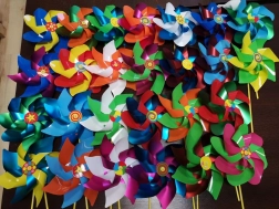Szélforgó különböző színváltozatokban, véletlenszerűen küldjük. Nagy szélforgó (színkeverék) a gyerekek örömére, mosolyt csal minden gyerek arcára. Otthoni játékra és kertbe vagy virágládába dekorációnak is alkalmas. Továbbfejlesztett, minőségi szerkezet a hosszú távú működésért. A tengely kiegészítő csöves tokot kapott, amely biztosítja a forgás hosszan tartó működését. A szélforgó az EU-ban készült. A teljes hossz rúddal együtt 50 cm. Fő jellemzők: teljes hossz rúddal 50 cm, otthonra és kertbe is megfelelő dekoráció.