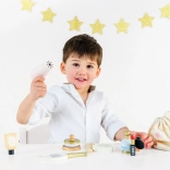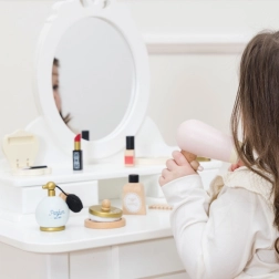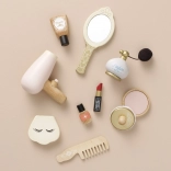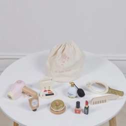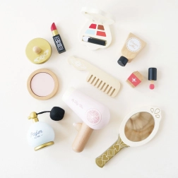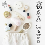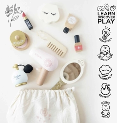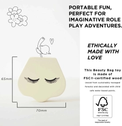 Légy saját műsorod sztárja ezzel a stílusos gyerek kozmetikai táskával! Mindent tartalmaz, ami a sminkes játékhoz kell – a krémtől a hajszárítóig. Természetes pamutból és FSC® tanúsítvánnyal rendelkező, minőségi fából készült, kézzel kiegészítve környezetbarát festékekkel. Fejleszti a képzelőerőt, a finommotorikát és a szerepjátékot.