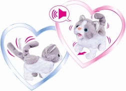 Ez a szürke-fehér CHICHI LOVE plüss cica tökéletesen puha, és tele van meglepetésekkel. Az interaktív funkcióknak köszönhetően még több örömet nyújt – tud mozogni, csóválja a farkát, és élethű hangokat ad ki, amelyek életre keltik a játékot.