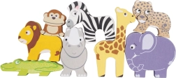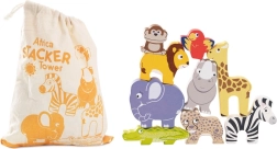 Ez a játékos készlet egy csipetnyi vad természetet hoz a gyerekszobába. A gyerekek a lehető legmagasabb tornyot építhetik az állatokból – zsiráf, oroszlán, elefánt, zebra, majom, orrszarvú, gepárd, krokodil és papagáj – miközben gyakorolják az egyensúlyt, a türelmet és a képzeletet. Az egyensúlyozó játék fejleszti a logikus gondolkodást, és segíti az alakok és színek érzékelését.
