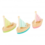 Három gyönyörű fa vitorlás hajó kis kapitányoknak, amely felejthetetlen szórakozást nyújt a vízben. Ezek a játékok támogatják a fantáziát és a motorikus készségeket a minimalista designnak és környezetbarát kialakításnak köszönhetően.