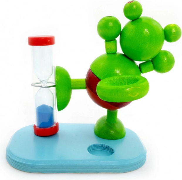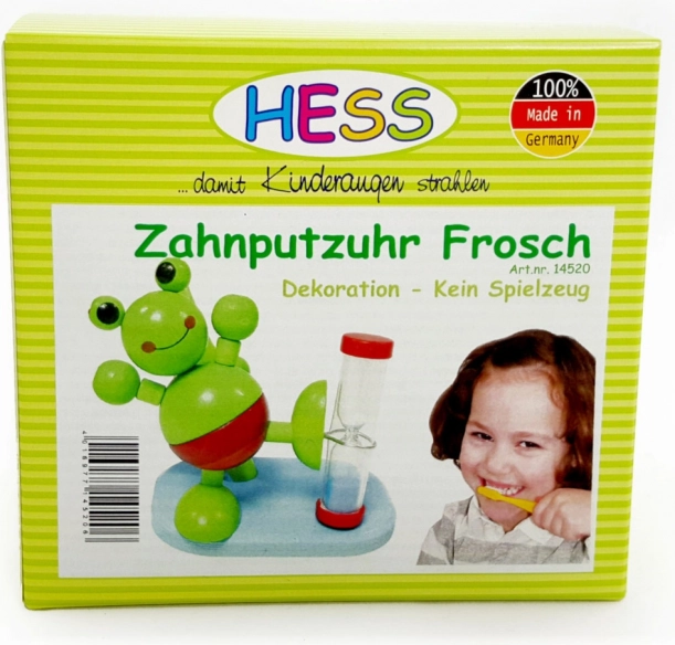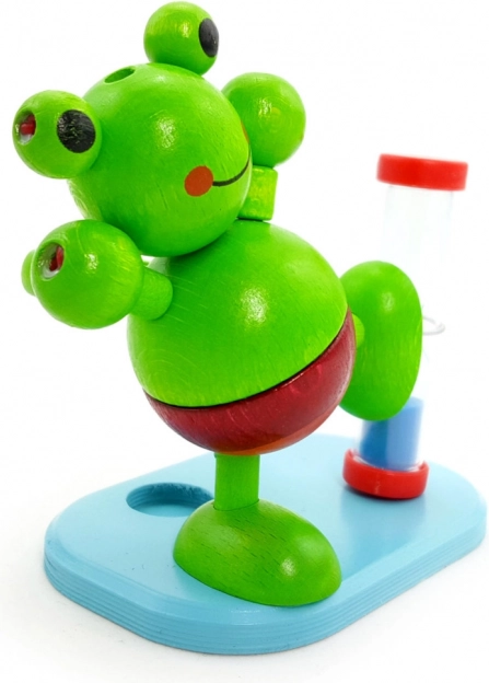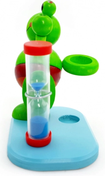 Tedd szórakoztatóvá a gyerekek mindennapi higiéniáját ezzel a játékos, béka alakú fa homokórával. Ideális a 2 perces fogmosási idő mérésére, a figura mögött praktikus fogkefetartóval. Minőségi kivitel kezeletlen természetes fából és vonzó dizájn, amely motivál a rendszeres fogmosásra.