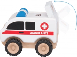 Baleset történt, hívja a mentőt! Ez a Wonderworld fa mini mentőautó egyedi dizájnnal és vezetővel tökéletes a kicsi kezek számára. Felnyíló hátsó ajtók könnyű hozzáférést biztosítanak és gazdagítják a gyermekjáték élményét.