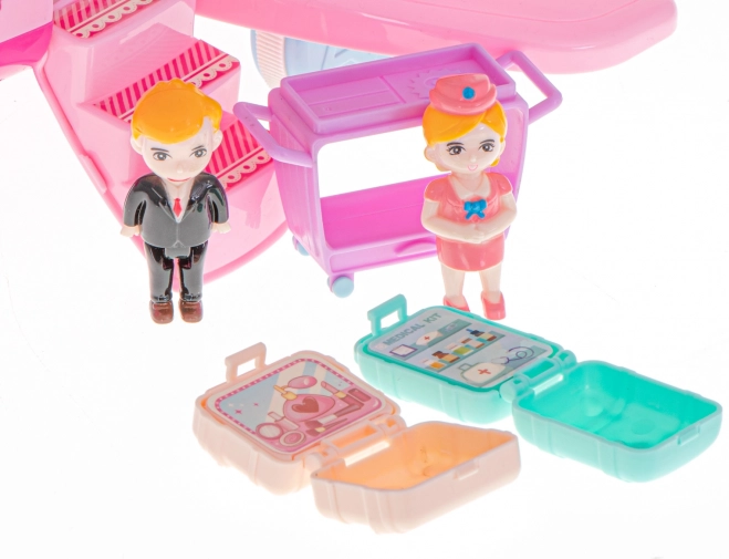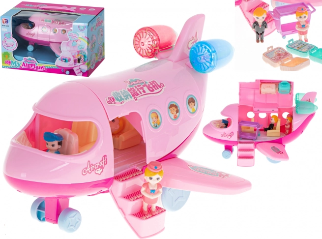 Gombok megnyomása után hangokat ad ki valódi repülőtér hangjainak megfelelően, beleértve a leszállást. Színes LED diodák világítanak. A repülőgép ráadásul dallamot is játszik. A repülőgép mozgó kerekekkel van felszerelve. Az utasokra a repülőgép pilótája várakozik. A fedélzeten elegáns utazót és légiutas-kísérőt fogad. Az ablakon keresztüli lenyűgöző kilátások mellett a repülés alatt frissítők biztosítottak, amelyeket egy speciális kocsival szállítanak. Természetesen poggyász nélkül nem lehet utazni, ezért a készlet tartalmaz két nyitható bőröndöt levehető fogantyúkkal.