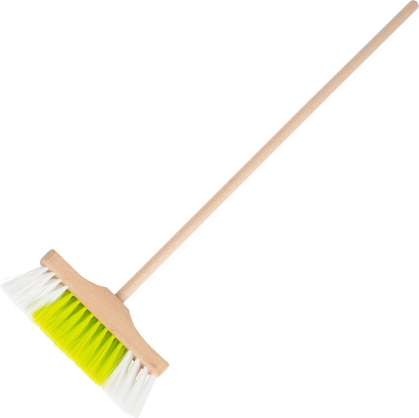 A fa nyelek és az erős műanyag elemek stabilitást és hosszú élettartamot biztosítanak, akár otthon, akár a játszószobában takarítanak a gyerekek.