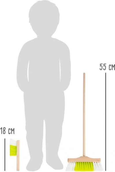 Az 55 cm-es seprű és a 18 cm-es kézi seprű tökéletesen illeszkedik a gyerekek kezébe, így könnyű a használatuk, a takarítás pedig természetes és szórakoztató élmény lesz.