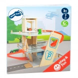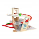 Fedezze fel a masszív, háromszintes fa parkolót működő lifttel és sima rámpákkal a végtelen autós játékhoz. A csomag tartalmaz két autót, egy benzinkutat, töltőt elektromos autókhoz, emelőrámpát, élethű autómosót kefékkel, valamint mechanikus sorompókat minden szinten. A biztonságos közlekedést a gumis védőkorlát biztosítja, a részletes felfestések pedig fejlesztik a közlekedési ismereteket.