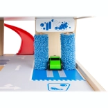 A forgó kefékkel ellátott mosó élethűvé teszi a játékot, míg a szinteken a gumis védőkorlát megakadályozza az autók kiesését és növeli a biztonságot.
