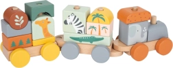 A fa Safari vonat játszótárs és oktatási eszköz a gyerekek számára. 1 mozdonyból, 2 kocsiból és 13 részből áll, amelyeket könnyedén kombinálhatnak a gyermekek fantáziája és elképzelései szerint. Minden darab állatmotívumokkal van illusztrálva, ami segít a kreativitás és képzelőerő fejlesztésében.