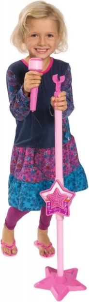 Rózsaszín gyermek mikrofon állvánnyal és MP3-támogatással (85–115 cm)