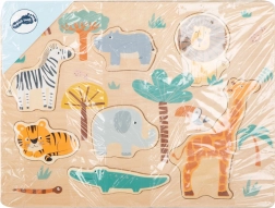 A small foot szafari fa puzzle ideális első kirakó a kis felfedezőknek. Minden darab egy szavannai állatot ábrázol, és pontosan illeszkedik a kimart helyére, ezzel támogatva a helyes szem-kéz koordinációt és a térbeli képzelőerőt.