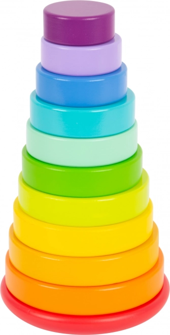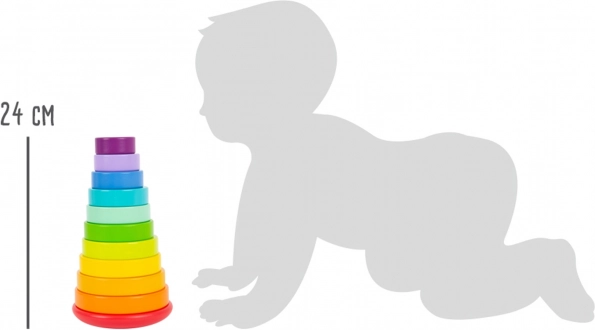 Tíz élénk színű koronggal és pálcával, lekerekített talppal ez a torony támogatja a finommotorika fejlődését és a színek megkülönböztetését.