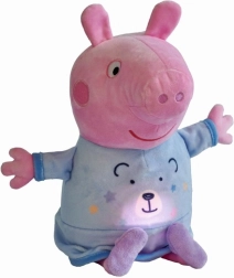 A bájos Peppa malac altatójáték kék pizsamában segít a gyerekeknek nyugodtan elaludni a altatódalnak és a kellemes éjszakai fénynek köszönhetően. A zene akár 15 percig szól, a fény pedig 30 percig világít, ezután minden automatikusan kikapcsol. Puha plüss kivitel és ideális 25 cm-es magasság az elalvás előtti ölelgetéshez.