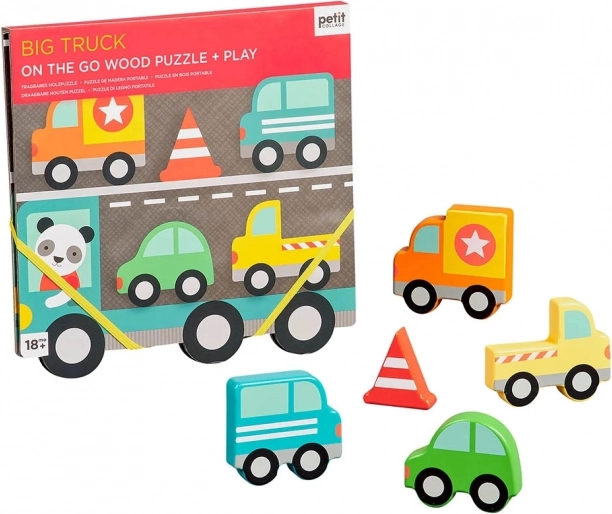 Masszív fa puzzle kicsi gyerekeknek nagy teherautóval. Szórakoztató játék, amely fejleszti a gyermekek motorikus képességeit és kreatív gondolkodását.
