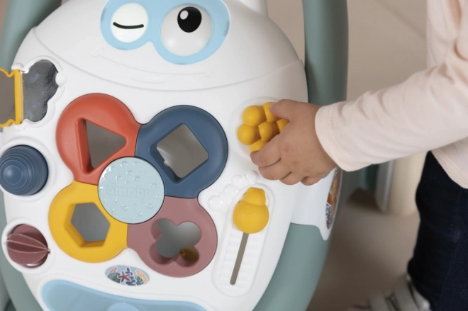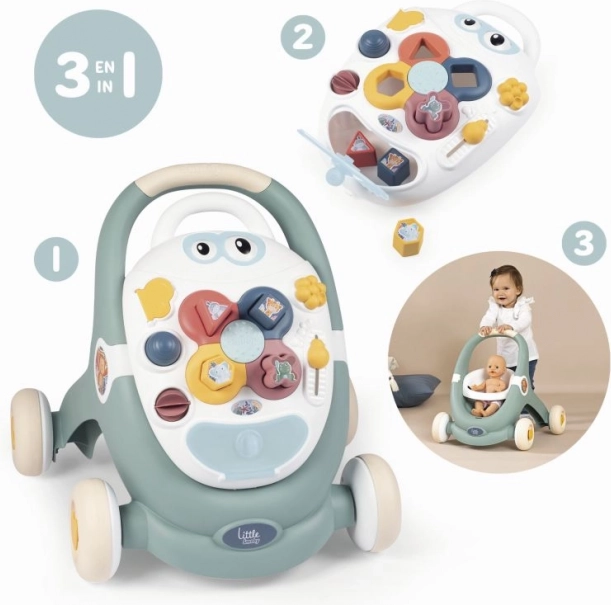 A Little Smoby járássegítőt 12 hónapos kortól tervezték, és számos tevékenységet biztosít: tolás, játékok járműként való használata, valamint interaktív tábla a motoros készségek és érzékek fejlesztéséhez.