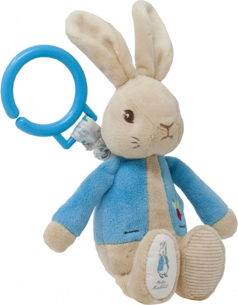 A felhúzható PETER RABBIT nyuszi ikonikus kék kabátkájában a legkisebb kezekhez lett tervezve. A műanyag gyűrűnek köszönhetően könnyen rögzíthető babakocsira, autósülésre vagy a kiságy fölé. A gyermek megfogja és meghúzza a játékot – elengedés után a nyuszi finoman visszatér, ami támogatja a finommotorika fejlődését, a kéz–szem koordinációt és az érzékelés fejlődését.