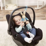 A kék gyűrű gyors rögzítést tesz lehetővé a babakocsi fogantyújára, az autósülés karfájára vagy a kiságy fölé.